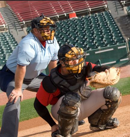 - Home Plate Umpire (Umpire-in-Chief): Steht hinter dem Catcher. Er entscheidet über Balls und Strikes, bewertet Fair- oder Foul-Balls in Erdnähe und trifft fast alle Entscheidungen rund um die Home Plate. Er trägt die schwerste Schutzausrüstung (Maske, Brustschutz, Beinschoner).